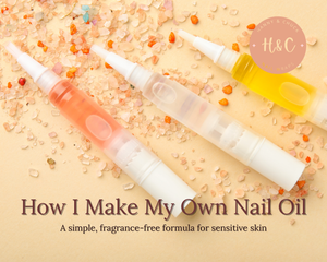 I love nail oil — but most store-bought options irritate my skin. After years of reacting to fragrance and essential oils, I started asking a simpler question: what does a nail oil actually need to do? This post shares the gentle, fragrance-free nail oil formula I make for myself — and how you can do the same if you have sensitive skin.