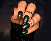 Forest Elixir glows with a rich, forest-green shimmer that feels both bold and elegant. In certain angles and lighting, you might catch the faintest burgundy undertone—a delicate shift that adds just a whisper of depth without taking away from the deep green magic. Perfect for when you want a manicure that’s striking but still refined.