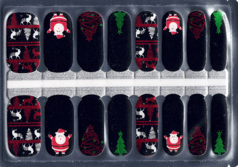 This holiday set blends cute and classic Christmas elements on a deep black base. You get playful Santa accents, sparkling green Christmas trees, and whimsical red wire-tree doodles. Mixed in are cozy knit-inspired panels featuring reindeer and winter forest silhouettes in red, white, and black. The overall look is festive, cheerful, and a little nostalgic—perfect for anyone who loves a mix of fun characters and classic holiday patterns.
