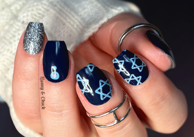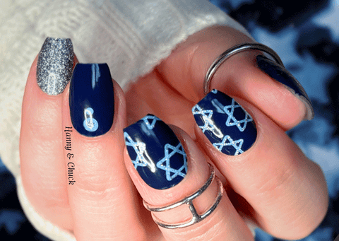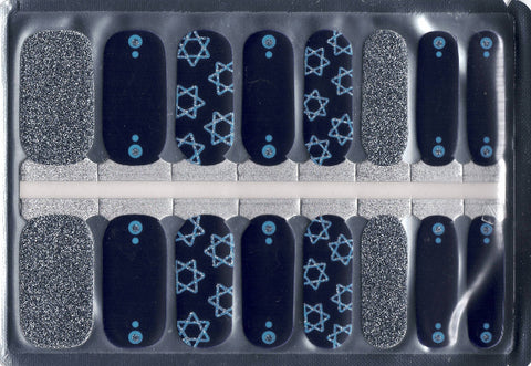 This set blends deep midnight-navy with icy blue stars and sparkling silver accents. You’ll get bold silver-glitter strips, sleek navy accents with tiny blue and silver dots, and shimmering Star of David designs for a chic nod to the season. The mix of solids, glitter and star details creates a modern, elegant holiday look with a wintry night-sky vibe.