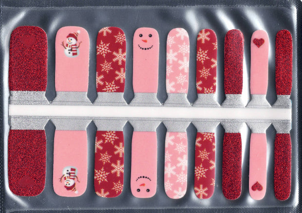 A cheerful winter mix of rosy pink, jolly snowman faces, sparkling holiday red, and dainty snowflakes. These wraps feel like candy-cane giggles, warm mittens, and snow-day magic all rolled into one. Perfect for little nail lovers who want festive fun with a sweet, playful twist.