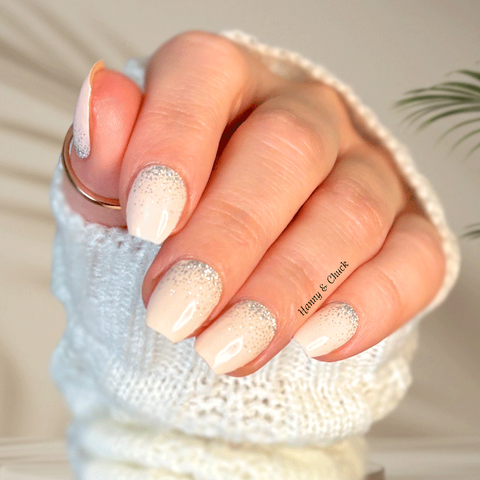 Barely Bling is the perfect balance of subtle and sparkle. Featuring a creamy nude base with a cascading gradient of fine silver glitter at the cuticle, this design gives your nails a touch of glamour while keeping it effortlessly chic. Ideal for everyday elegance or adding a whisper of shine to special occasions.