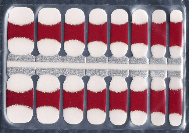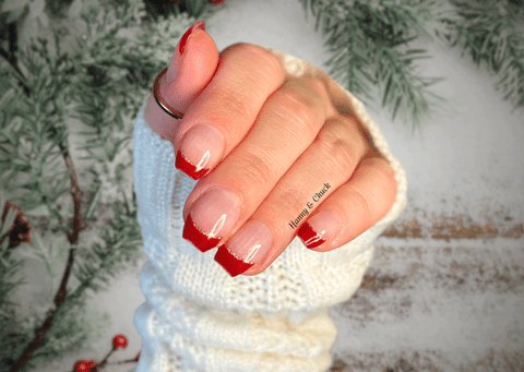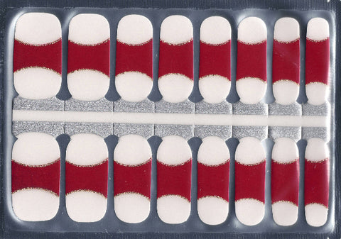 Bring a chic twist to the classic French manicure. This set pairs a rich, festive red tip with a fine gold line that catches the light just enough to feel elegant — never flashy. Timeless, polished, and perfect for the holiday season, it suits cozy nights in or dressed-up celebrations alike. Clean, crisp, and effortlessly classy, this design gives you a holiday-ready manicure with almost no effort.
