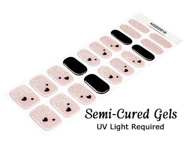 These Semi-Cured Gel nail wraps, made from real gel nail polish that is 60% pre-cured, apply similarly to our standard nail wraps. A brief 60-second exposure to UV LED light hardens these strips, resulting in a durable manicure that lasts up to 14 days. They're particularly advantageous for those with thin or brittle nails, as they provide added strength and support.