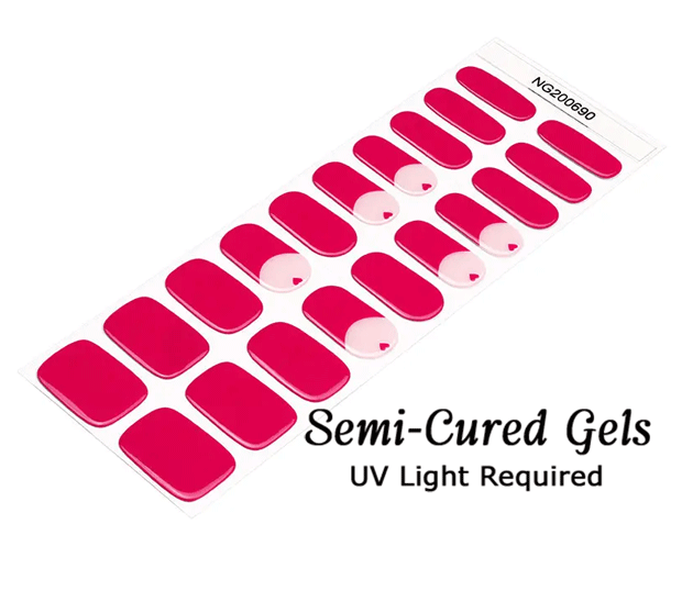 These Semi-Cured Gel nail wraps, made from real gel nail polish that is 60% pre-cured, apply similarly to our standard nail wraps. A brief 60-second exposure to UV LED light hardens these strips, resulting in a durable manicure that lasts up to 14 days. They're particularly advantageous for those with thin or brittle nails, as they provide added strength and support.