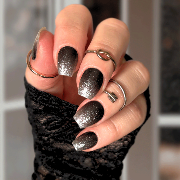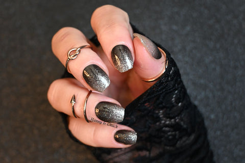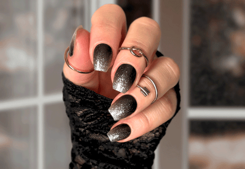 Bring a little drama to your mani with Smoky Quartz—an ombré nail wrap that melts from deep, smoky black into a cascade of shimmering silver glitter. Bold yet sophisticated, with just the right amount of sparkle to make your nails feel special. Perfect for spooky autumn nights or ringing in the New Year, this design strikes the balance of glamour and mystery. A true standout for anyone who loves timeless beauty with a modern twist.