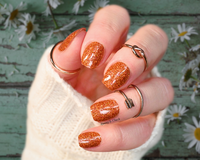 Ignite your nails with the Solar Flare nail wrap! This burnt orange glitter wrap, infused with holographic sparkles, captures the essence of a fiery sunset. Watch your nails shimmer and shine as they catch the light.