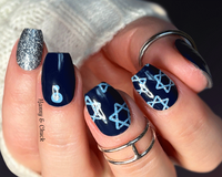 This set blends deep midnight-navy with icy blue stars and sparkling silver accents. You’ll get bold silver-glitter strips, sleek navy accents with tiny blue and silver dots, and shimmering Star of David designs for a chic nod to the season. The mix of solids, glitter and star details creates a modern, elegant holiday look with a wintry night-sky vibe.