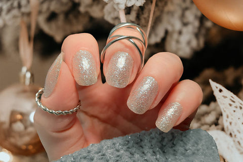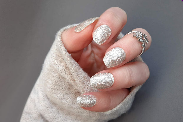 Crystal Crush is a soft white glitter wrap with a delicate shimmer that catches the light just right. Glossy and refined, it’s perfect for all the ber months—cozy enough for fall, crisp enough for winter, and always effortlessly elegant.
