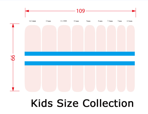 Our Kids Collection includes 18 single-sided nail wraps — enough for one full manicure, with a few extras for accent nails.