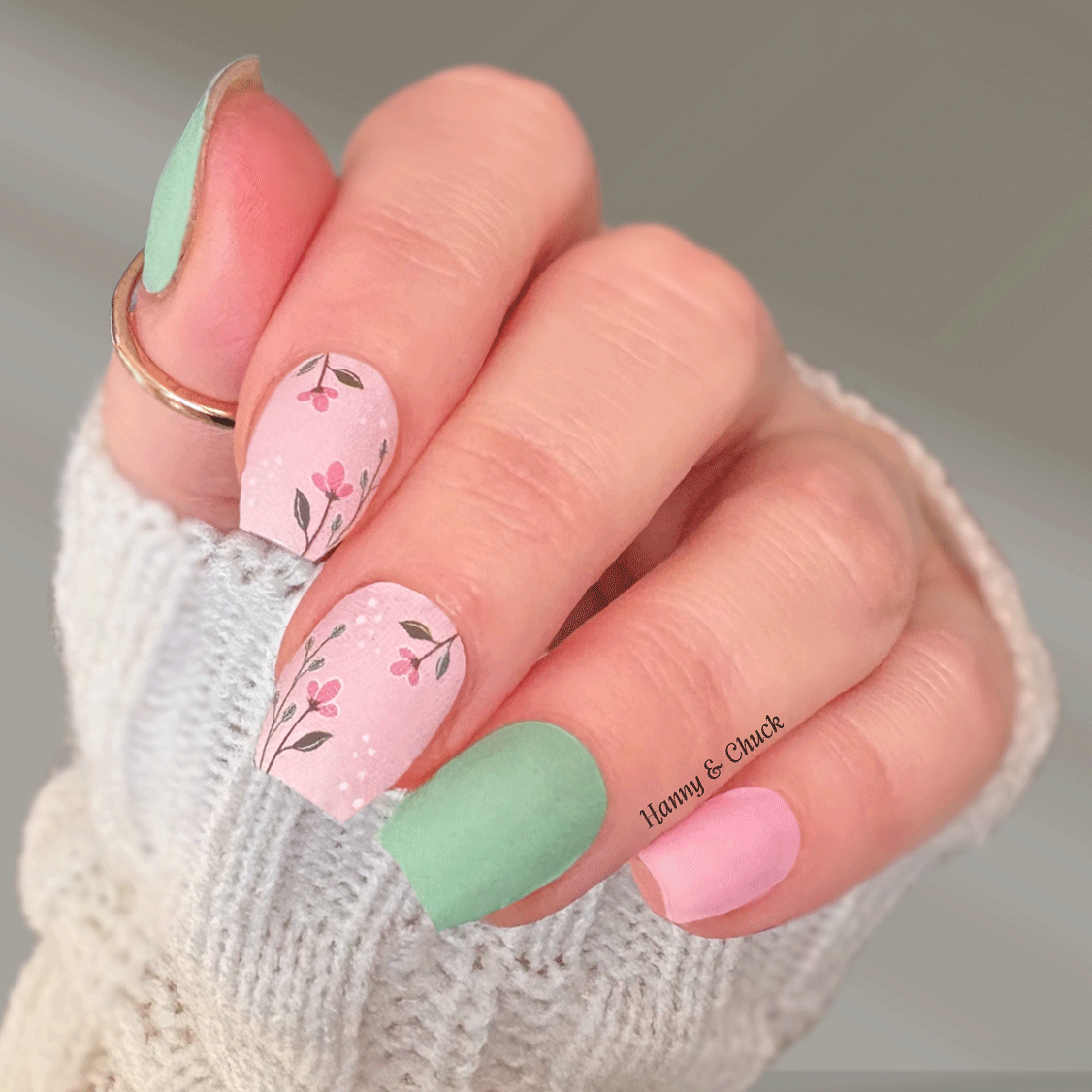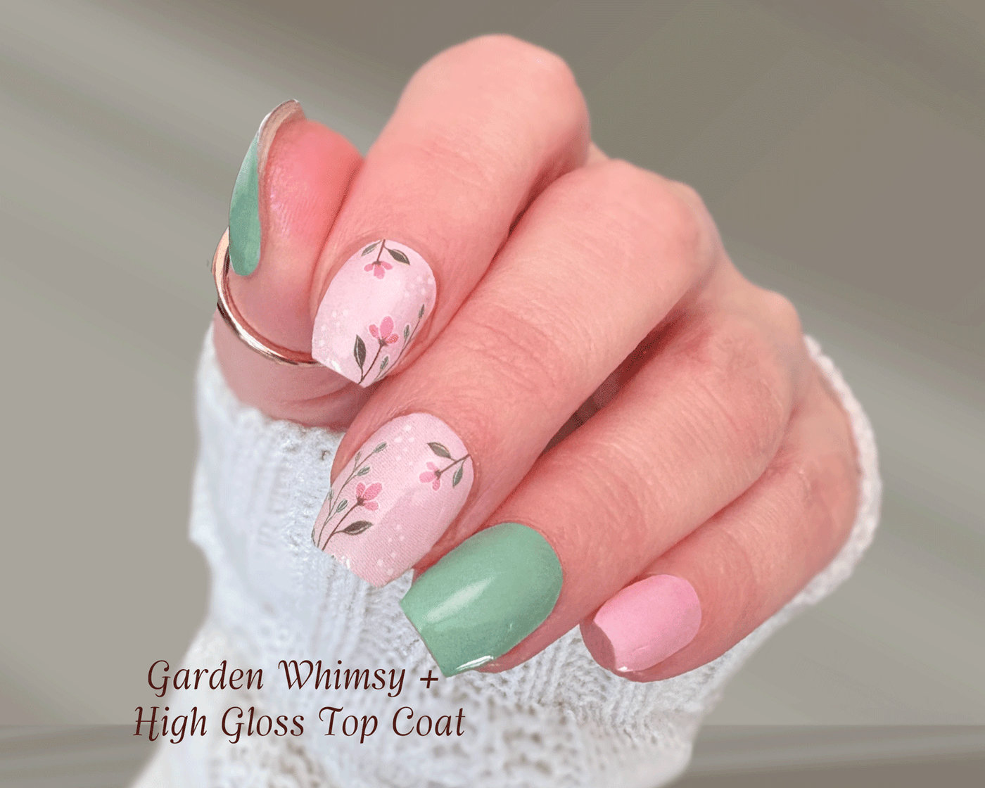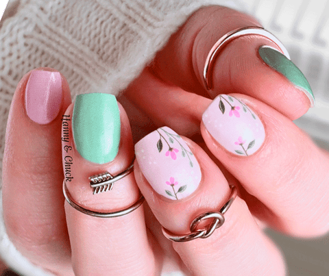 Garden Whimsy is a playful matte nail wrap inspired by soft spring moments and quiet garden paths. Featuring a mix of gentle florals, leafy accents, and coordinating solid wraps, this design feels lighthearted and fresh without being busy.