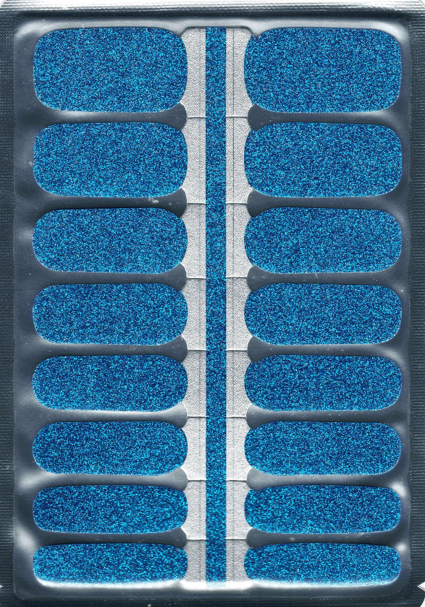 Blueberry Fizz is a vivid blue glitter nail wrap with a smooth, glossy finish that sparkles beautifully in the light. The rich blue adds depth and vibrancy, while fine glitter catches the light without feeling chunky or overpowering.