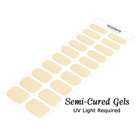 These Semi-Cured Gel nail wraps, made from real gel nail polish that is 60% pre-cured, apply similarly to our standard nail wraps. A brief 60-second exposure to UV LED light hardens these strips, resulting in a durable manicure that lasts up to 14 days. They're particularly advantageous for those with thin or brittle nails, as they provide added strength and support.