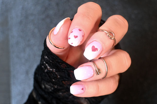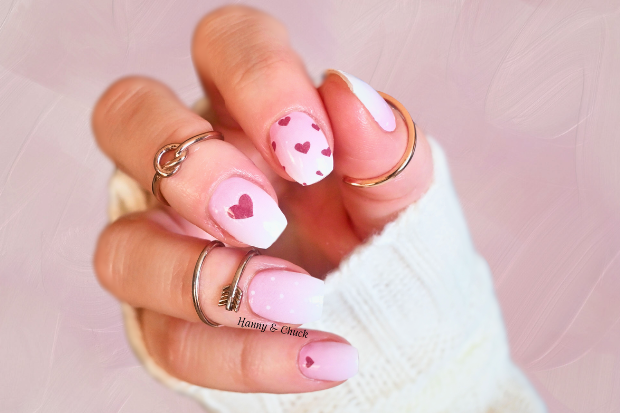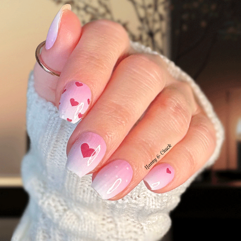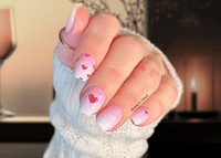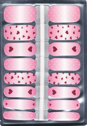 Soft Sweetheart nail wraps feature a subtle ombré of soft pink tones with scattered red heart accents for a clean, expressive look. The gentle fade keeps the design balanced and wearable, while the heart details add a touch of personality without feeling loud or seasonal. It’s an easy choice for anyone who likes understated design with a hint of charm.
