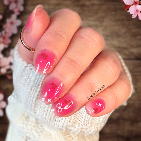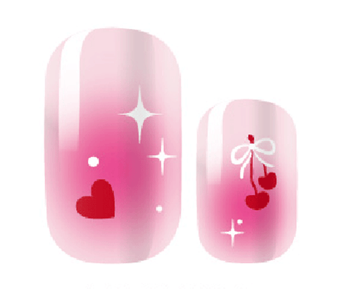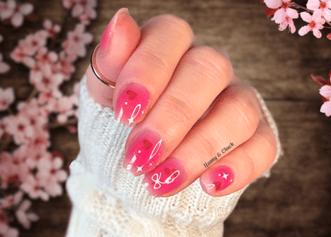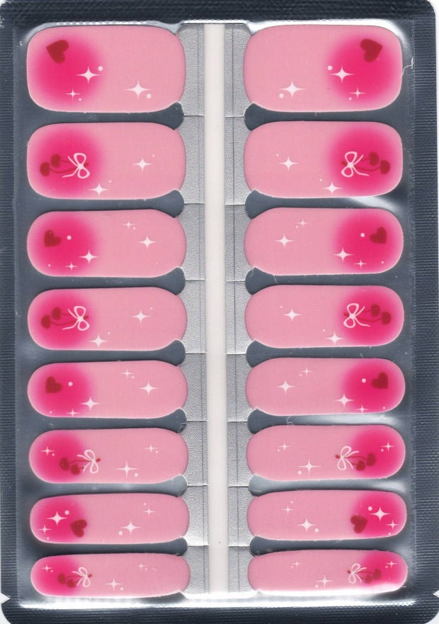 Your Place or Mine? is a sheer pink nail wrap with a soft, glossy finish and playful heart accents. The translucent base lets your natural nail show through, creating a clean, barely-there look, while the deeper pink hearts add a flirty touch without overpowering the design. Sweet, subtle, and effortlessly wearable — perfect for everyday romance or a quiet nod to Valentine’s vibes year-round.